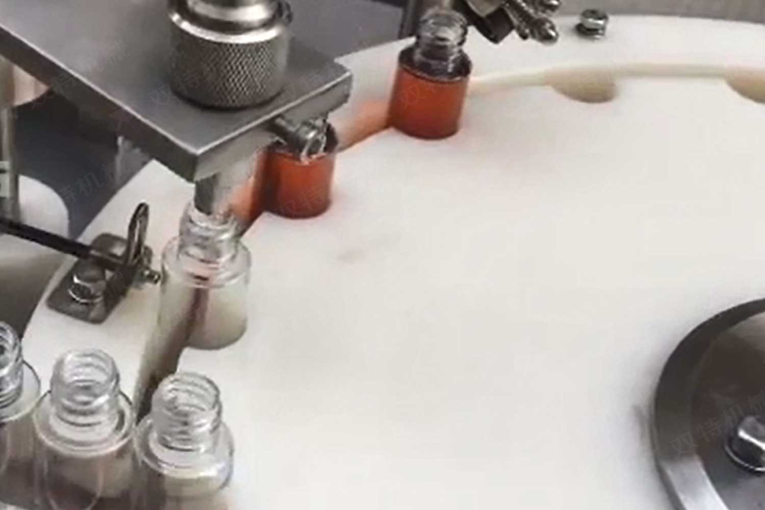 旋蓋機主要用于玻璃廣口瓶的三、四、六鐵蓋真空旋蓋,用兩根不同速度的皮帶壓瓶蓋,因兩根皮帶的速度不同,對蓋進行搓蓋收緊達到旋蓋目的。在自動上蓋之前對瓶口吹蒸汽加熱,吹掉冷空氣,換上高溫蒸汽,立即旋蓋,根據(jù)熱脹冷縮原理,蒸汽冷下來就自然形成了瓶內(nèi)真空,達到了真空旋蓋的目的。自動旋蓋機可以和濃醬灌裝機、蜂蜜灌裝機、辣椒醬灌裝機組合在一起,形成一套全自動灌裝設(shè)備,是現(xiàn)代調(diào)味品企業(yè)的得力幫手。